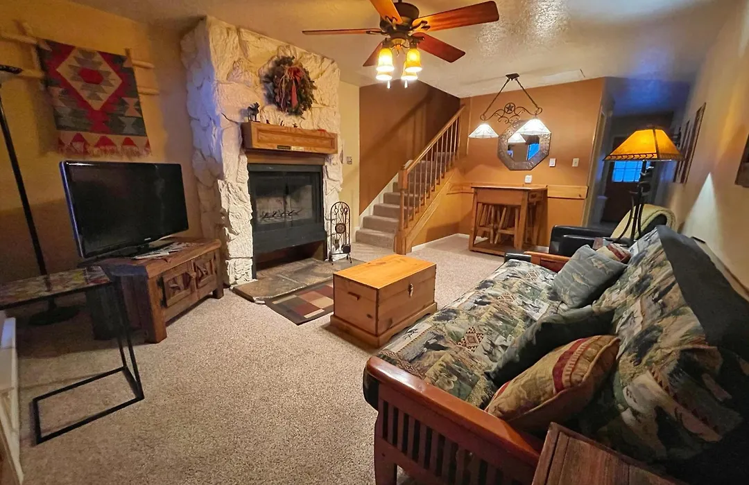 Con vistas a las montañas, Valley Condo 110 - Creekside - Wifi - Pet Friendly - Hot Tub - Fireplace - Washer - Dryer - Playground dispone de TV y televisión con múltiples canales. Las comodidades de los cuartos de baño incluyen secadores de pelo y toallas de baño.